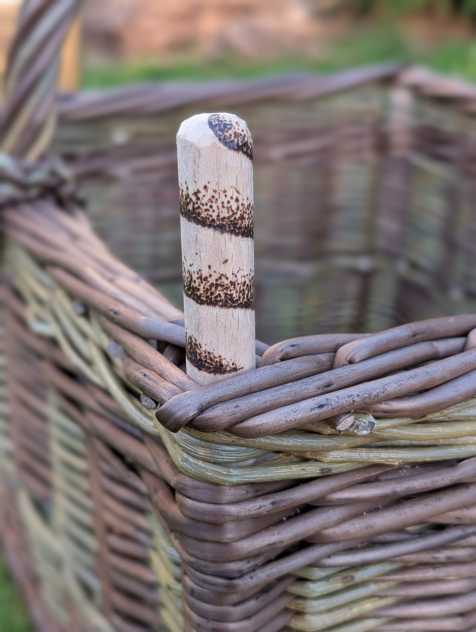Square shopper with two-tone willow and a pyrographed peg